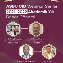 Üniversitemiz Uluslararası Kalkınma Çalışmaları Uygulama ve Araştırma Merkezi (ASBU CID) tarafından düzenlenen Webinar Serileri 2021-2022 Akademik Yılı Bahar Döneminde de devam edecektir. Webinarlar Çarşamba günleri saat 14.00’te gerçekleşecektir.