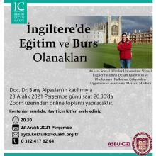 Merkez Müdürümüz Doç. Dr. Barış Alpaslan 23 Aralık 2021 tarihinde saat 20.30'da İbrahim Çeçen Vakfı bursiyerlerine yönelik olarak "İngiltere'de Eğitim ve Burs Olanakları" başlıklı webinar verecektir.